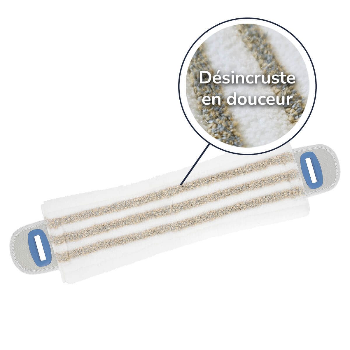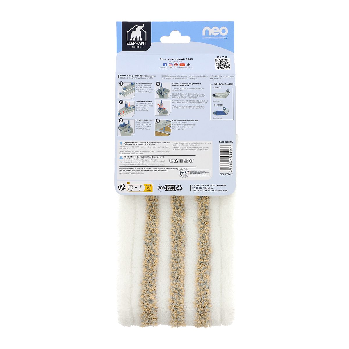 La nouvelle housse de lavage NEO Eléphant est idéale pour nettoyer vos parquets: une véritable innovation textile qui allie douceur des fibres blanches absorbantes et efficacité contre les taches des fibres beiges légèrement grattantes.
