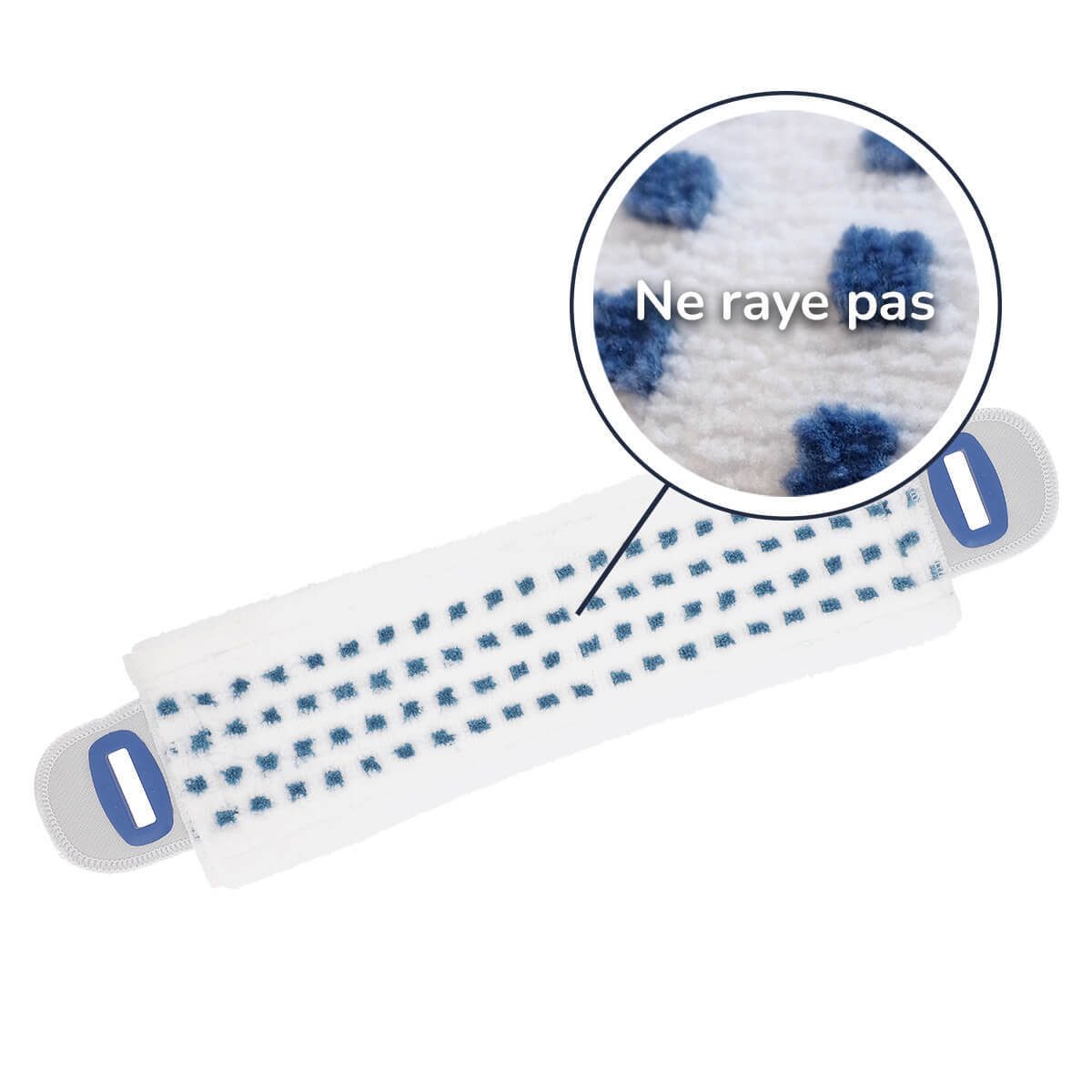 Ses fibres bleues permettent de nettoyer en profondeur sans rayer.