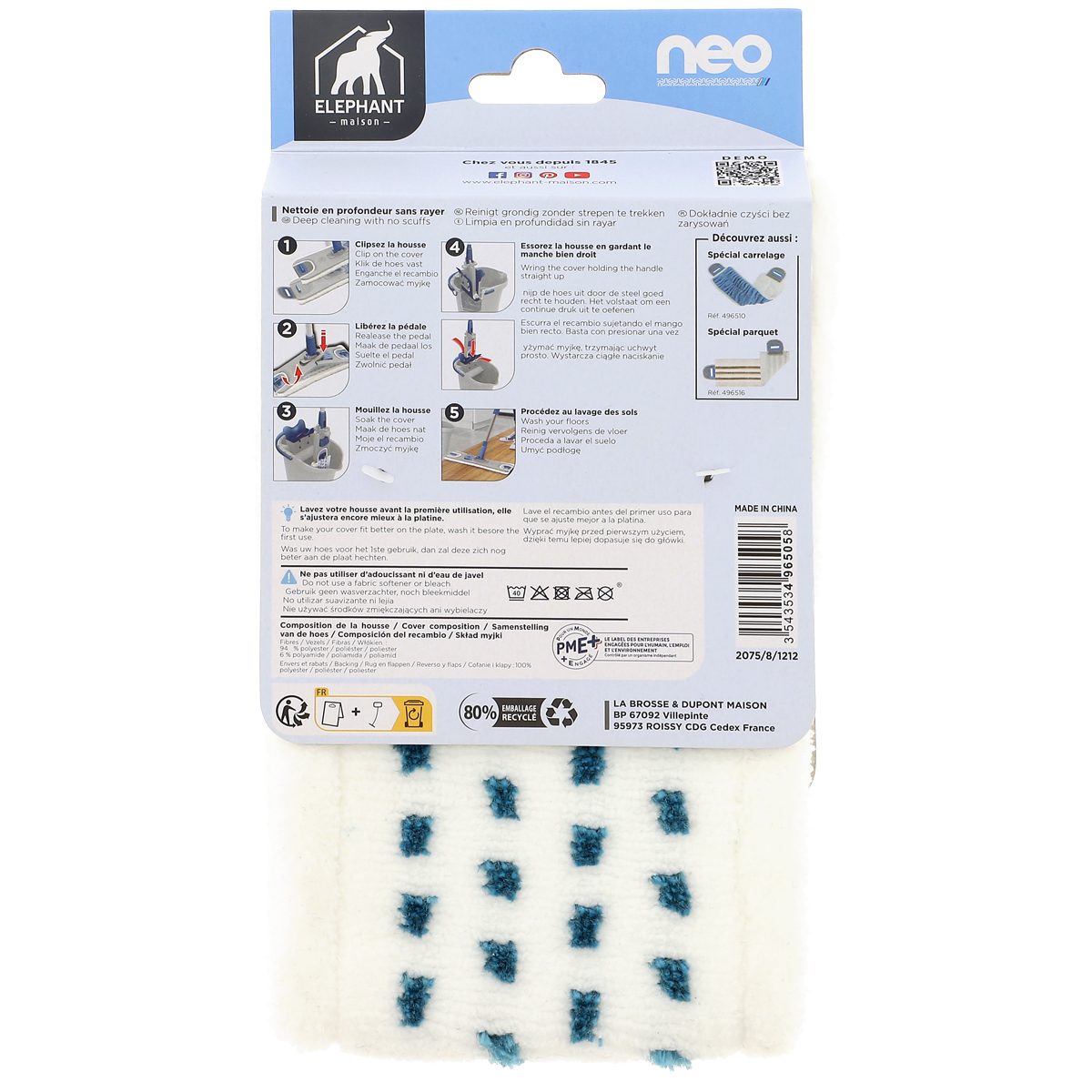 Renouvelez la recharge de votre balai à plat NEO : elle est idéale pour nettoyer, même sans détergent, tous les sols de votre maison.