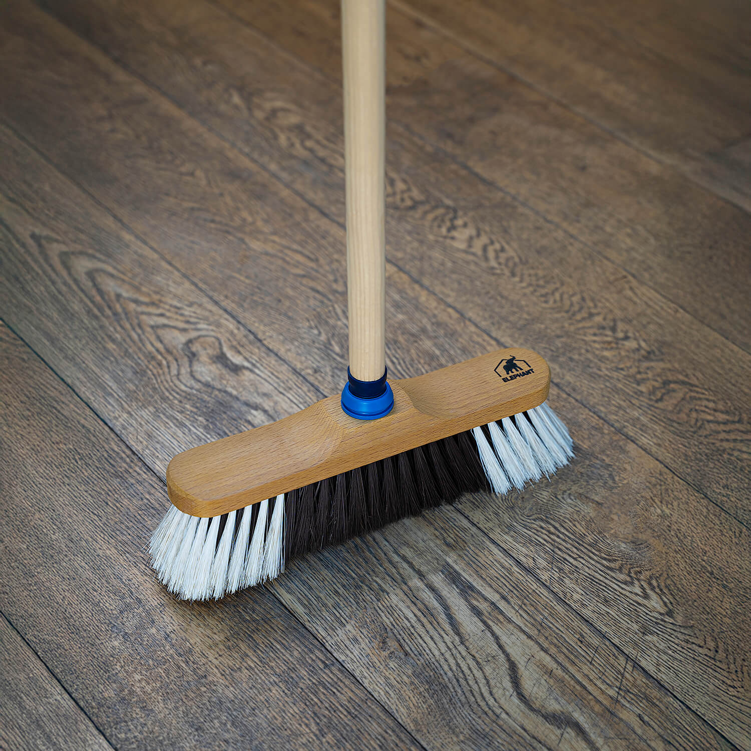 - Les fibres du balai en partie en crin naturel sont particulièrement souples et nerveuses pour le balayage des sols les plus délicats