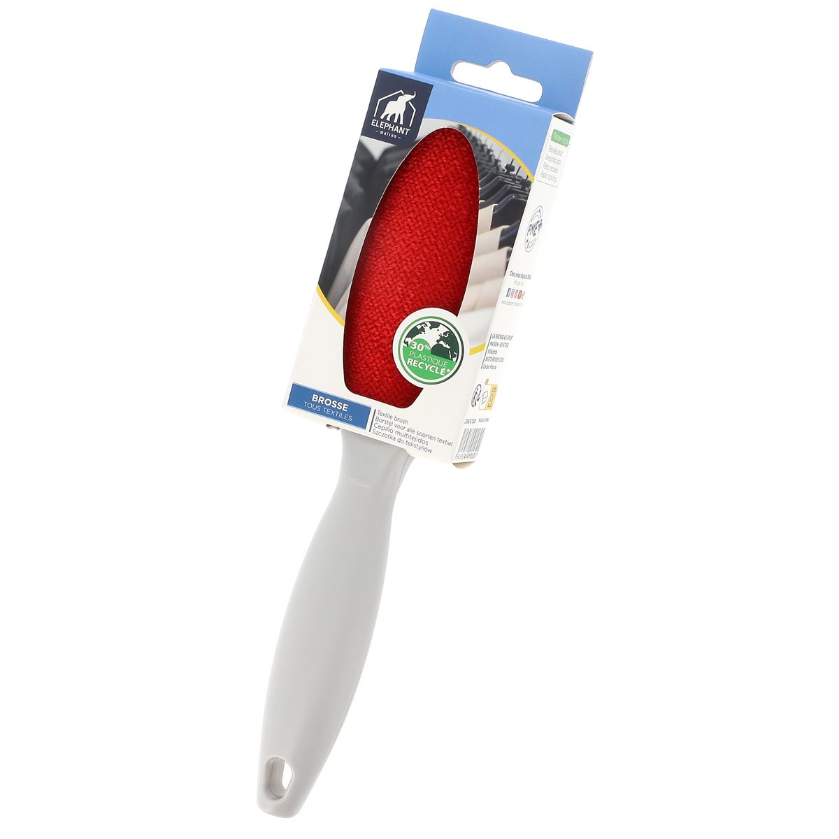 - Efficace sur vêtements et textiles (poils, poussières, peluches).
