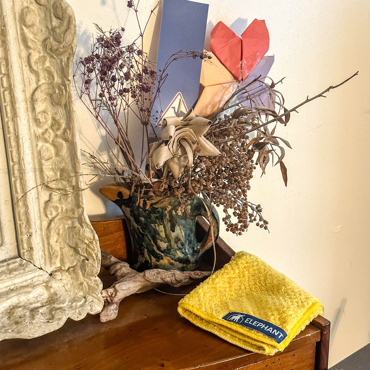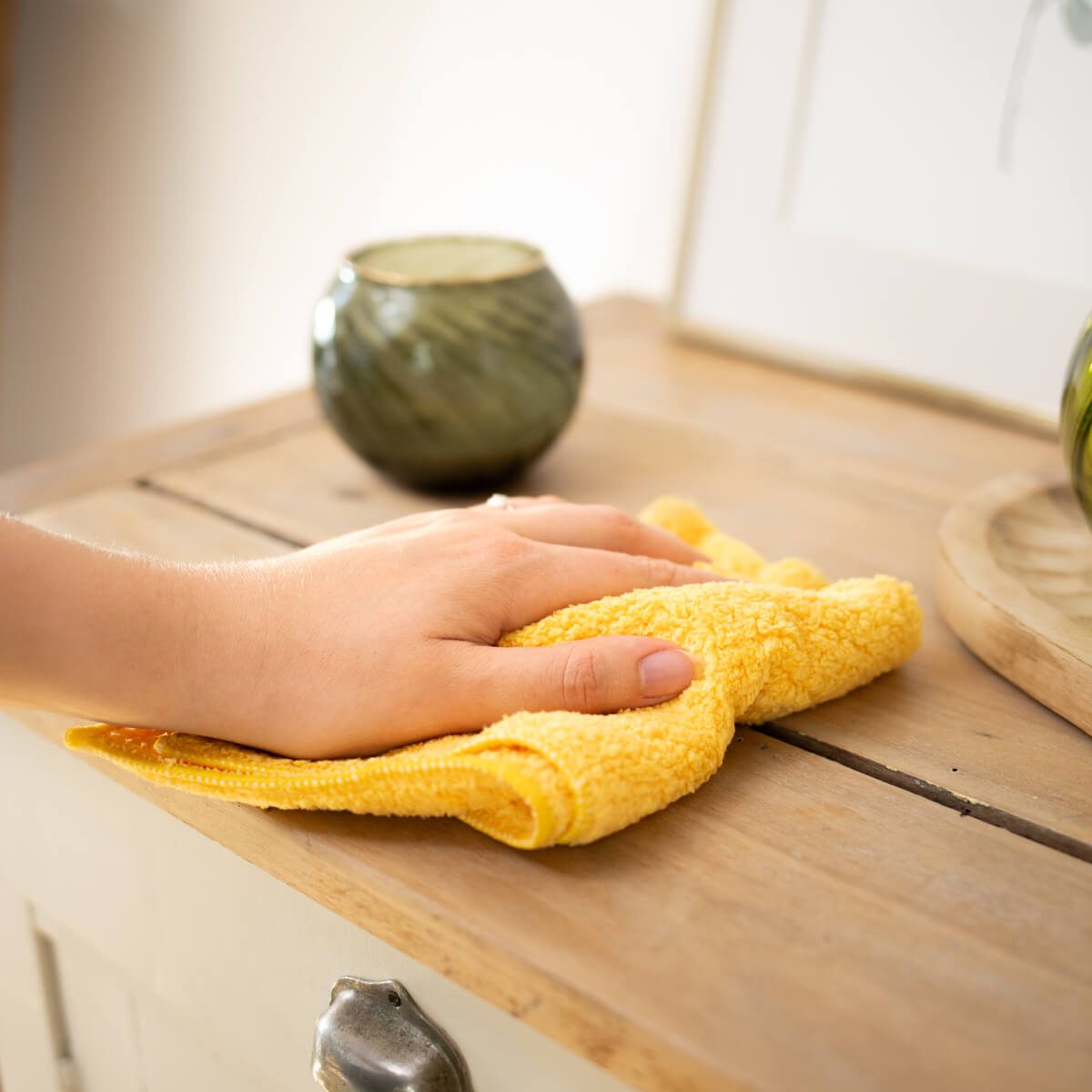Pour dépoussiérer vos meubles ou objets, utilisez le chiffon à sec sans détergent. C'est efficace, économique et écologique !