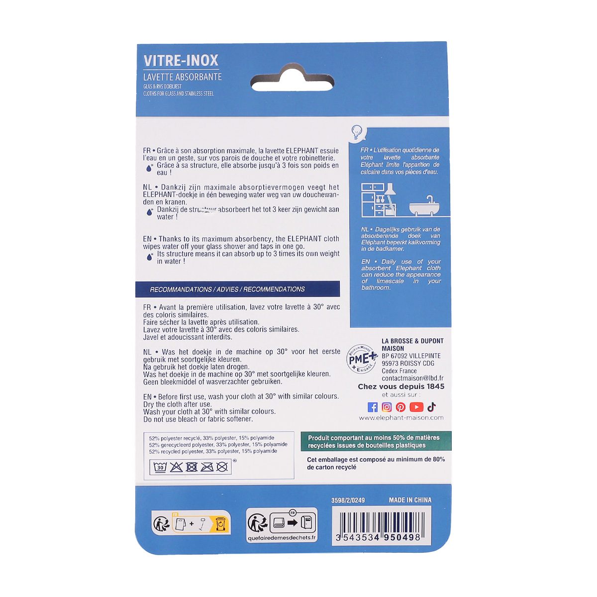 Après utilisation, rincez votre lavette à l'eau claire ou passez-la en machine à 40°C.
