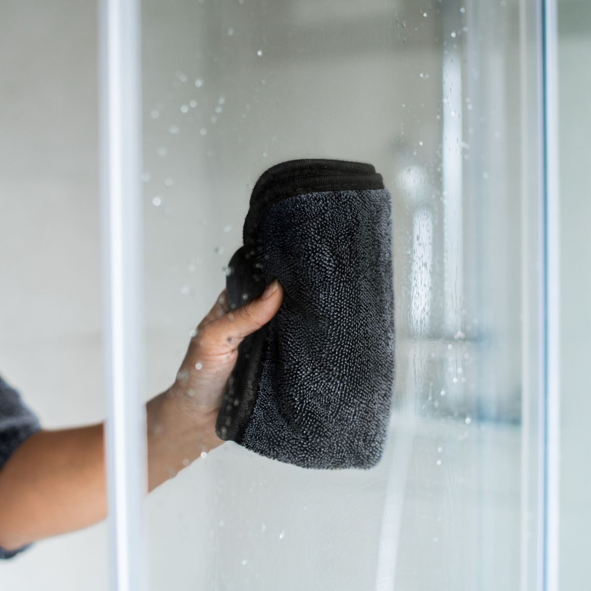 Vaporisez à l'eau tiède votre surface vitrée puis passez la lavette vitre afin de permettre un séchage rapide.