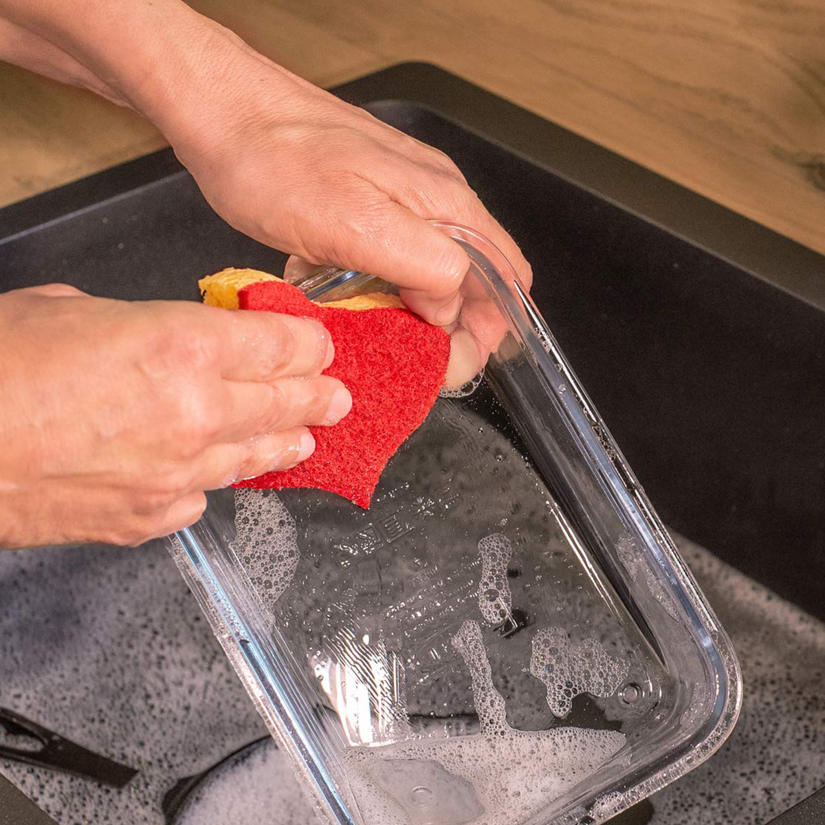 Vous pouvez passer votre éponge à la machine à laver ou au lave-vaisselle afin de la conserver plus longtemps
