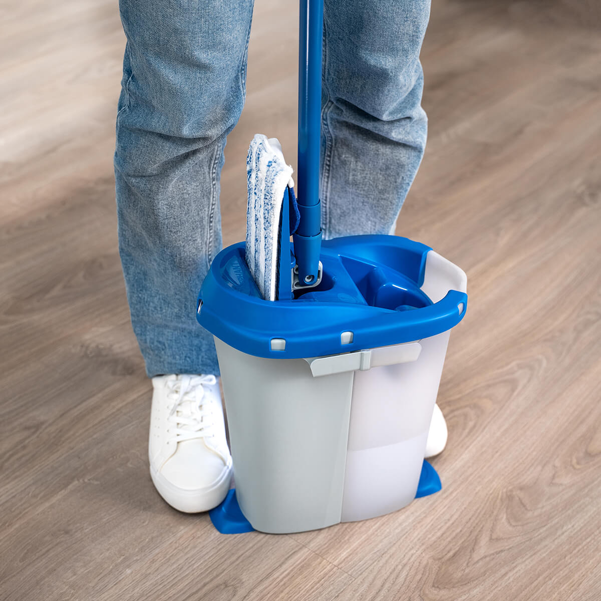 Un lavage hygiénique : Le système double bac sépare l’eau de lavage de l’eau essorée pour éviter de nettoyer vos sols avec une eau très sale.