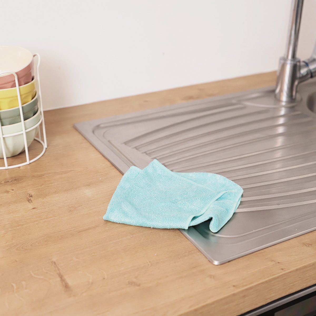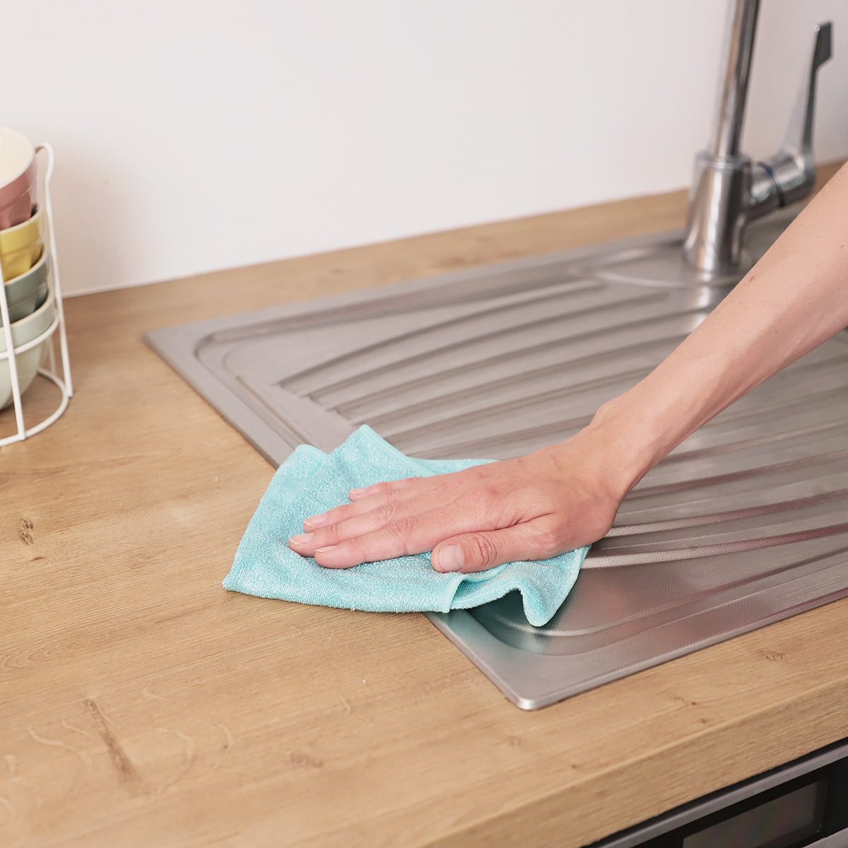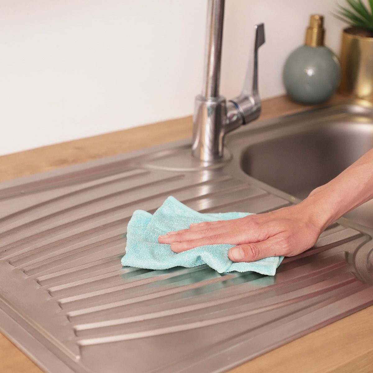 Vous pouvez également utiliser votre lavette pour assécher votre robinetterie, évier... En l'utilisant quotidiennement, vous pourrez ainsi limiter l'apparition de calcaire.