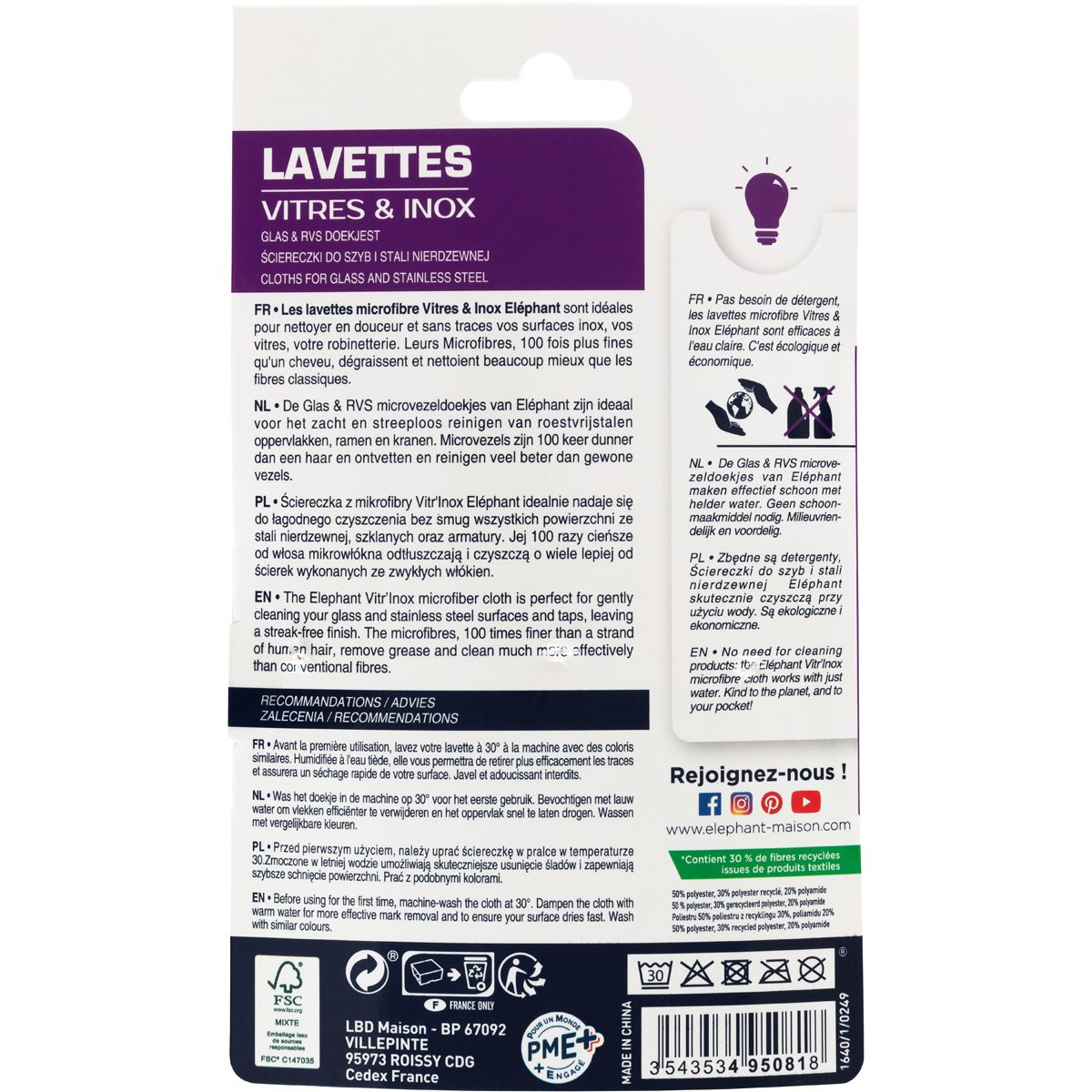 Après utilisation, rincez votre lavette à l'eau claire ou passez-la en machine à 30°