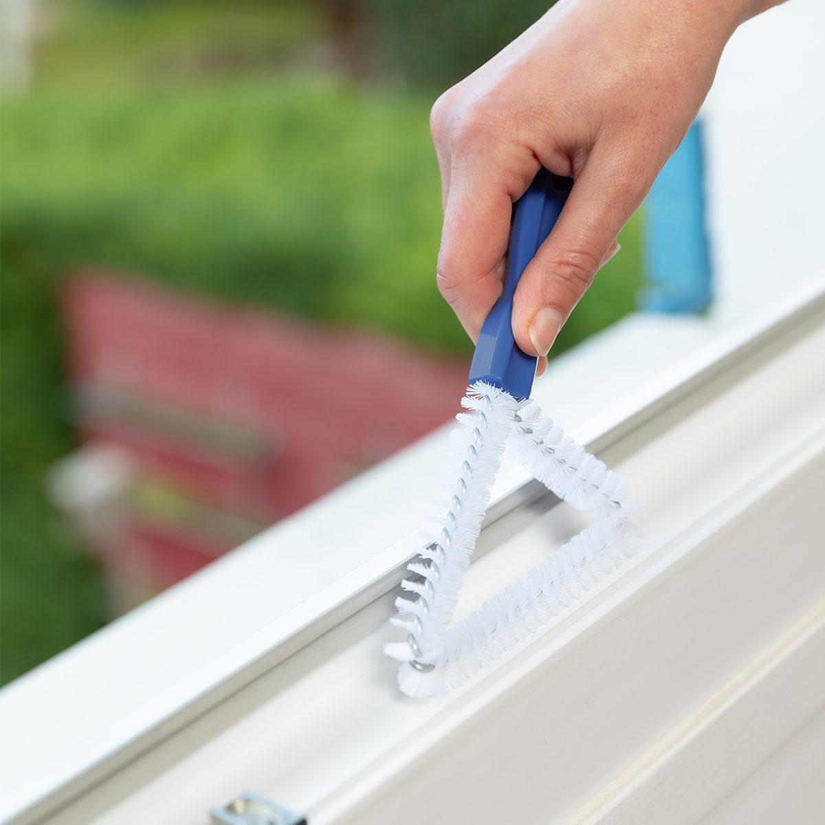 Humidifiez la brosse avec de l'eau, appliquez un agent nettoyant puis frottez le rail de fenêtre pour déloger la saleté.