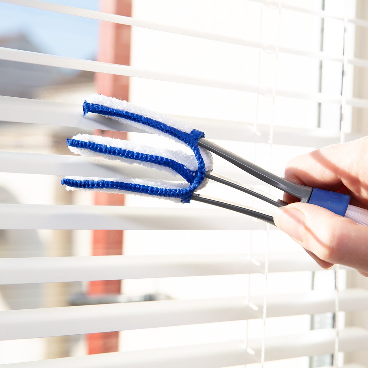Pincez deux lames de stores et faites glisser la brosse sur toute la longueur de la lame. Réitérez l'opération sur toutes les lames.