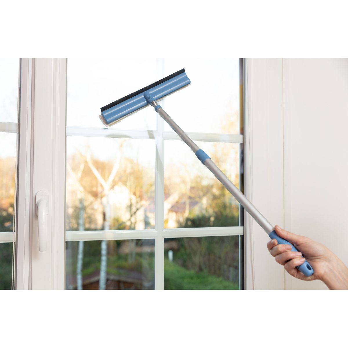 Desserrez la bague de serrage pour régler la hauteur du manche selon votre souhait et resserrez-la avant de procéder au lavage de la vitre.