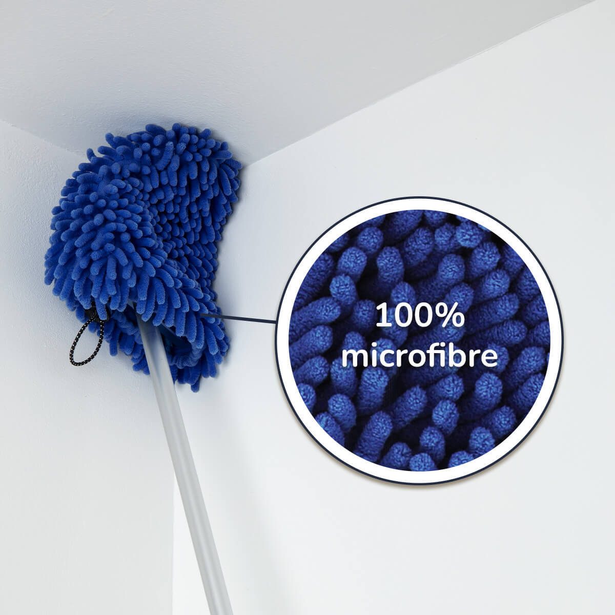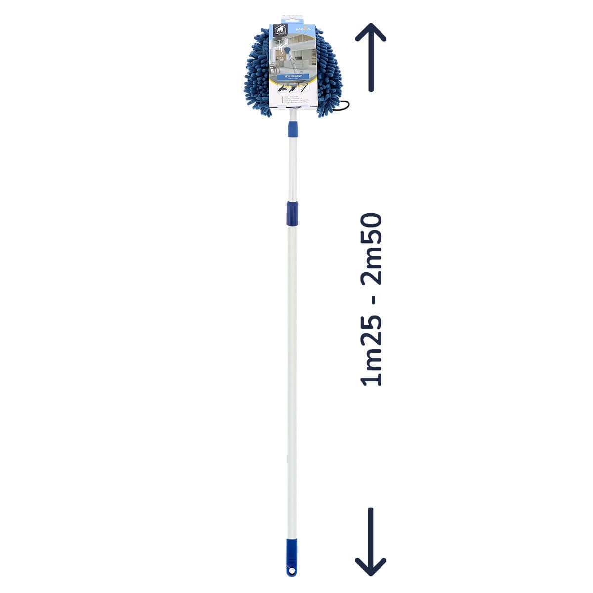 - Son manche est en aluminium ultra léger et télescopique jusqu’à 2m50 : vous ne pourrez plus vous en passer pour dépoussiérer les surfaces en hauteur.